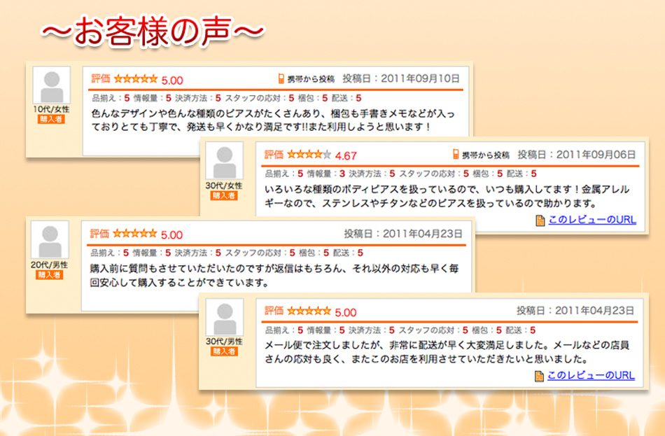 ボディピアス専門店PIERCING-NANA 運営会社:株式会社ストレッチマネジメント 本社所在地:〒460-0008 愛知県名古屋市中区栄2-1-12 ダイアパレス伏見8F お問い合わせ先: TEL:052-221-0964 FAX:052-253-5742 mail:shop@piercing-nana.jp |
